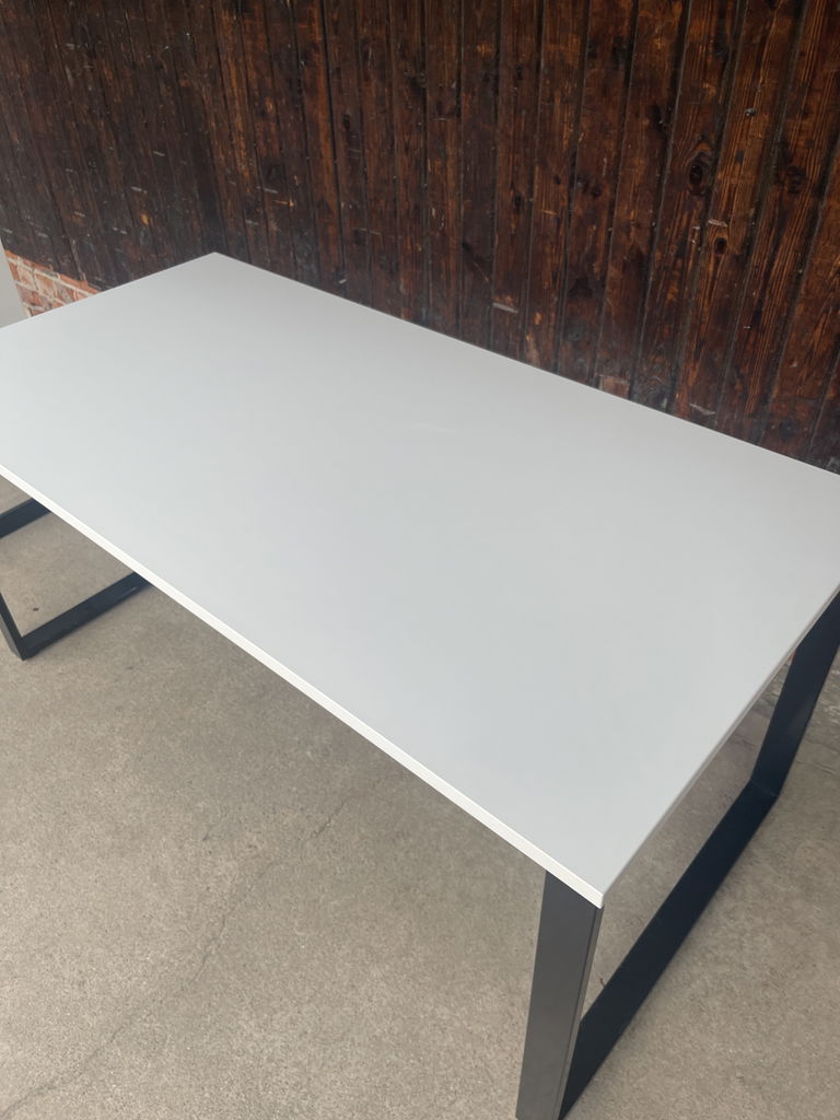 Bord med vit skiva och svart stativ i måtten 140x80cm, H74cm.