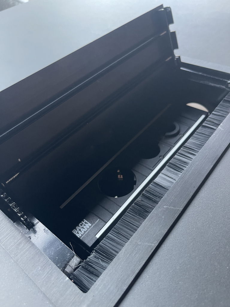 Bordet är tredelat och är utrustat med eluttag.