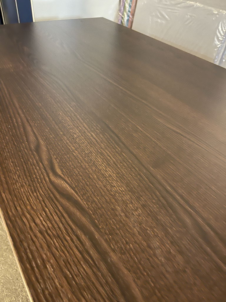 Elbord med svart stativ i måtten 120x70cm i valnötsaktig skiva.