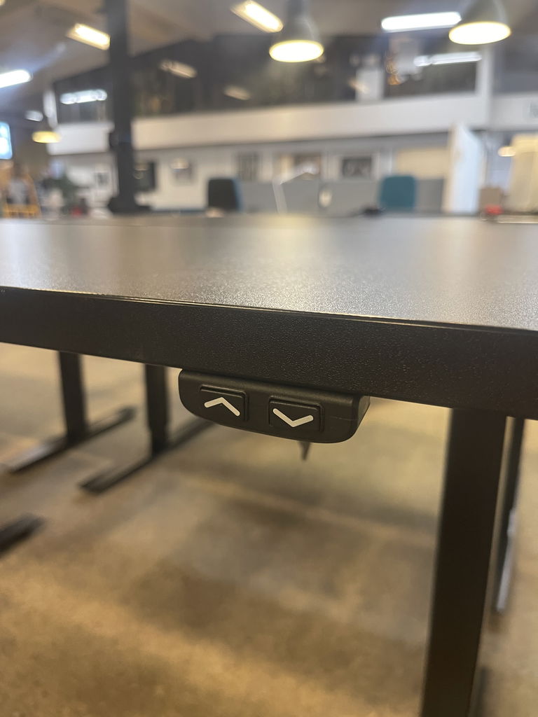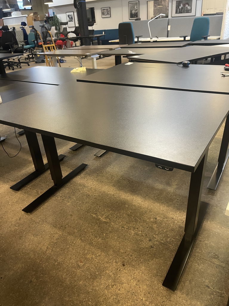 Eldrivet skrivbord med svart skiva och svart underrede. Borden är i mycket fint skick. Storlek 120x80 cm