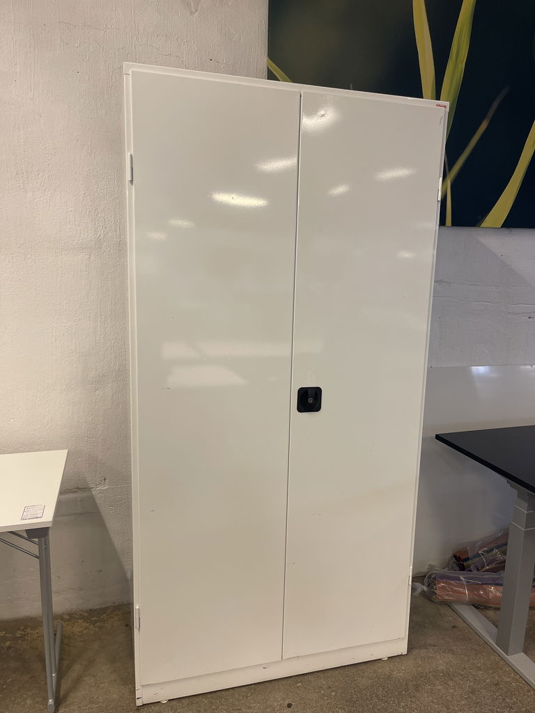 Begagnad plåtskåp från märket ESSELTE i vitt. 1st nyckel medföljer.