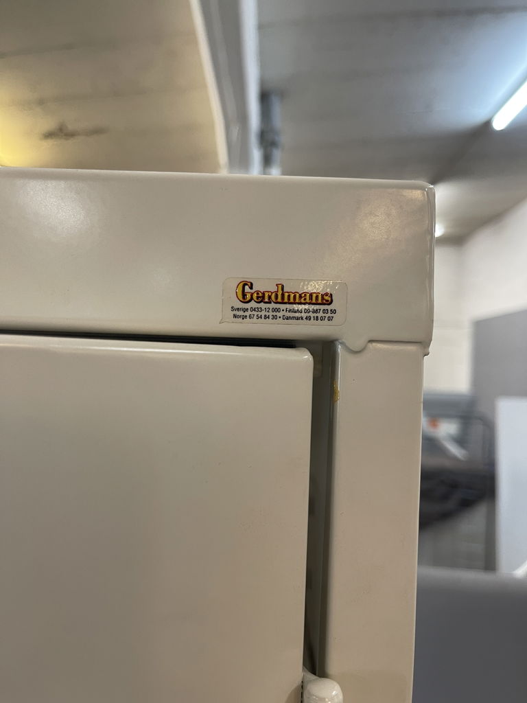 Begagnat plåtskåp från märket GERDMANS i varmvit kulör. MÅTT: Höjd 198cm Bredd 100cm Djup 40cm OBS: Finns ingen nyckel till låset.