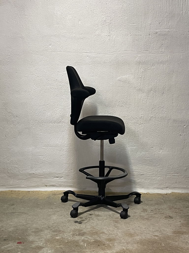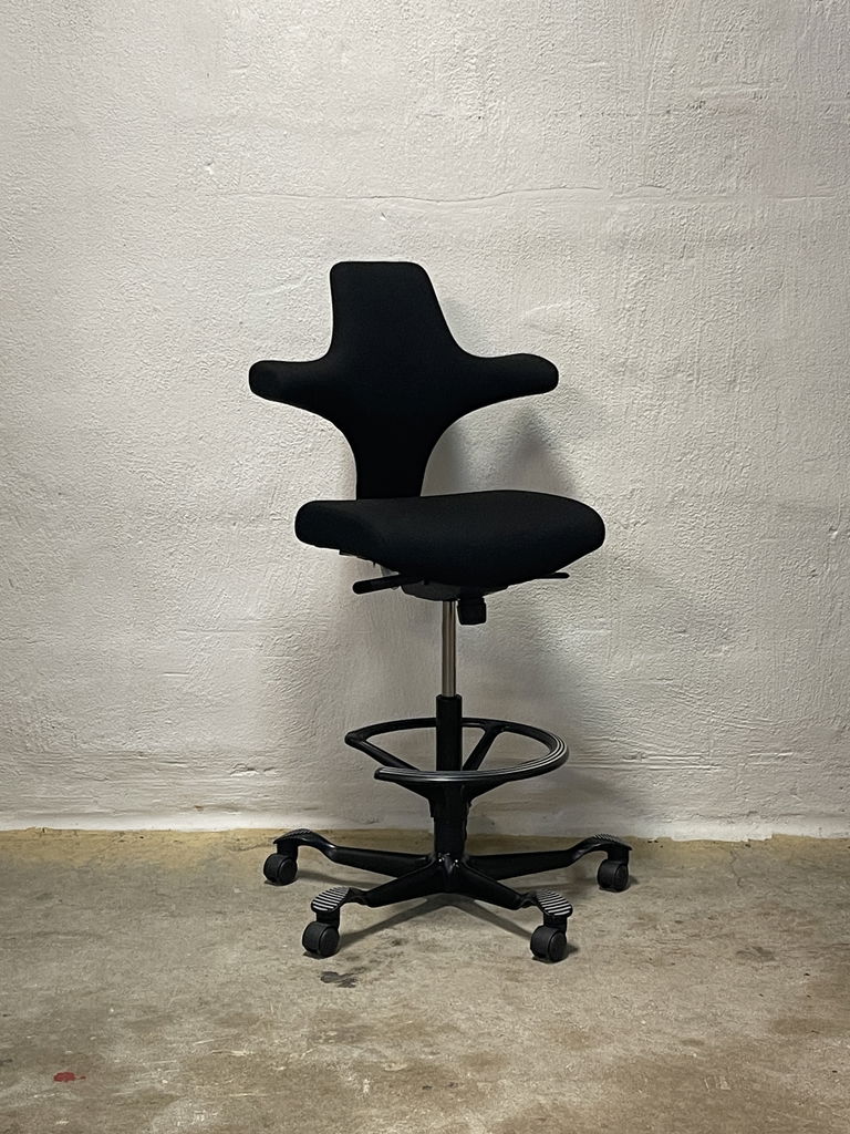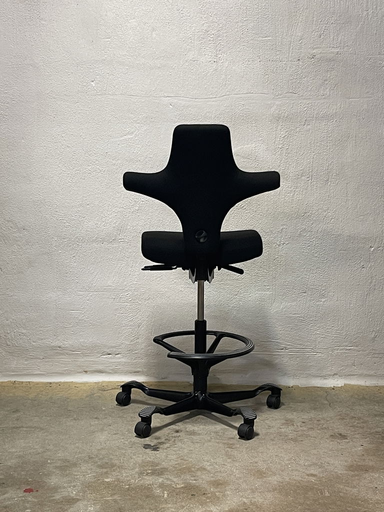 Begagnad HÅG Capisco med svart tygklädsel. Sitthöjd reglerbar mellan cirka 51-69 cm. Capisco-stolen är en ergonomisk och mångsidig stol som är designad för att främja rörelse och variation under arbetsdagen. Dess unika form gör det möjligt att sitta framåt, bakåt eller i sidled, samtidigt som den stödjer en upprätt och aktiv sittställning. Capisco är ett populärt val för dem som söker en balans mellan komfort, flexibilitet och hälsa på arbetsplatsen.