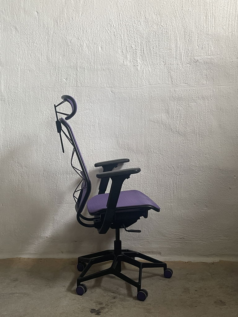 Gamingstol från märket IKEA i modellen "Styrspel". Stolen är klädd i lila meshtyg.