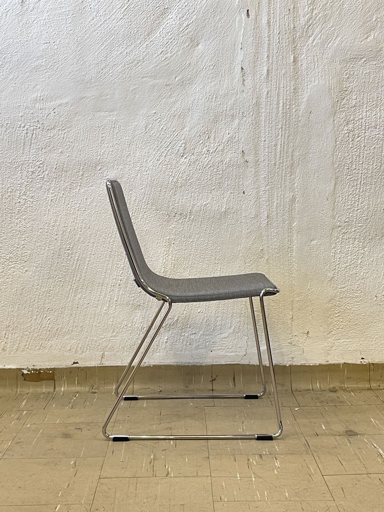 Begagnade konferensstolar från märket JOHANSON DESIGN i modellen "Speed" . Stolen är i en grå tygklädsel med kromade ben.