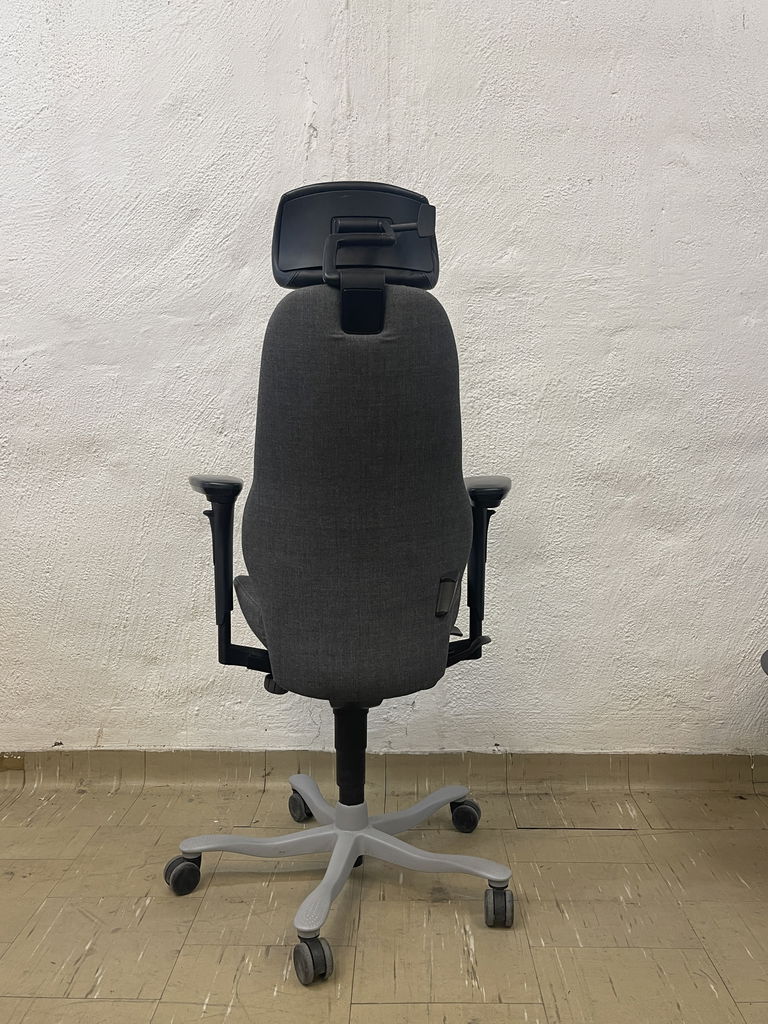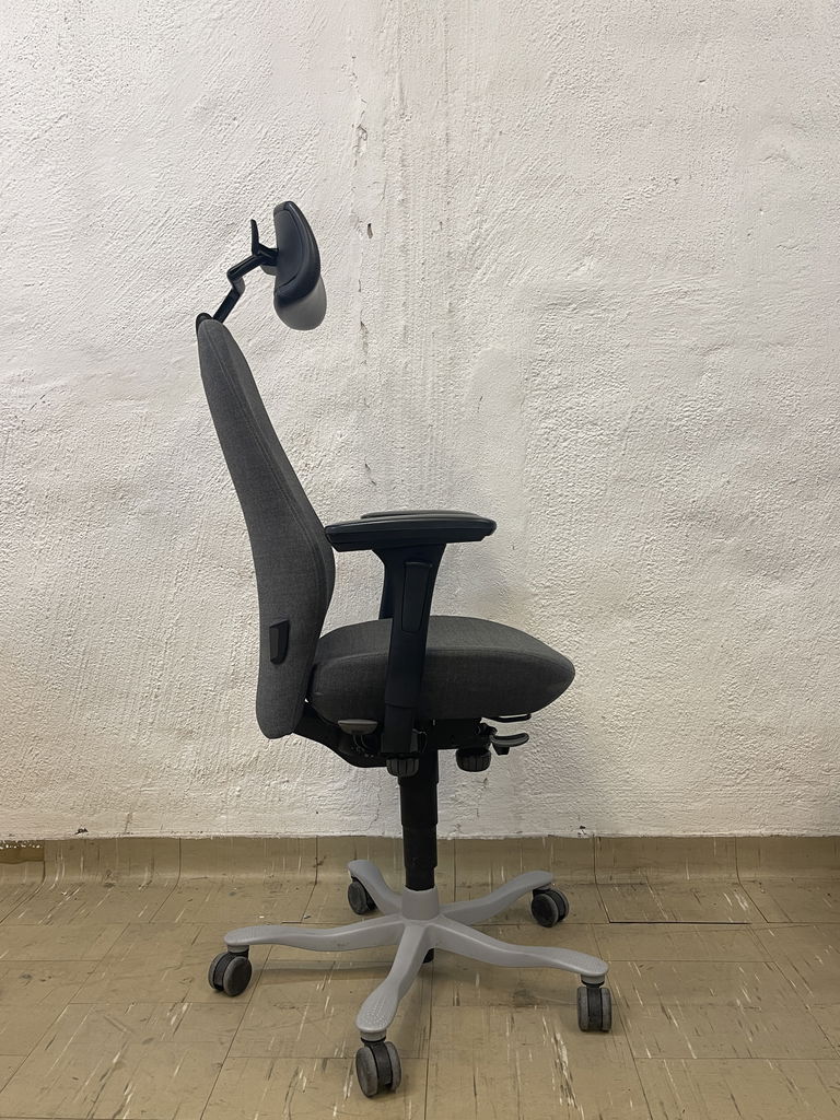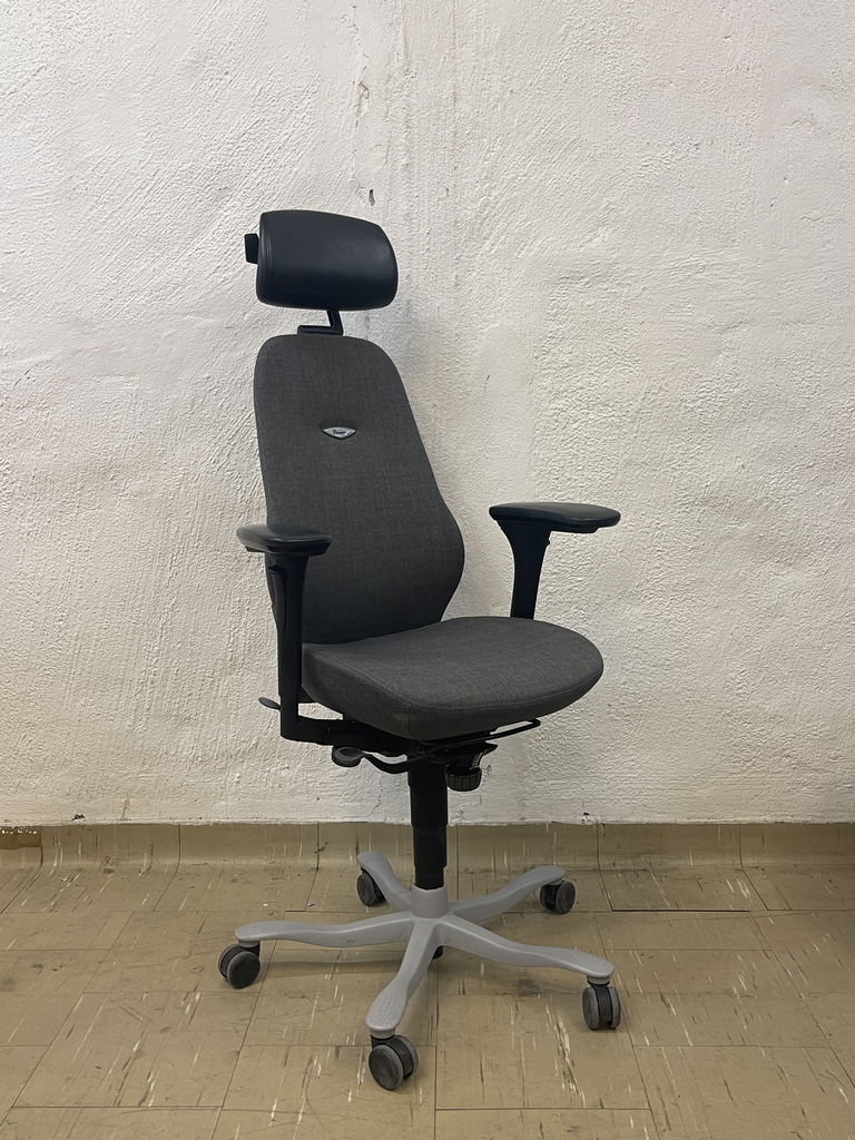 Begagnad kontorsstol från KINNARPS i modellen Plus. Stolen är i grå tygklädsel.