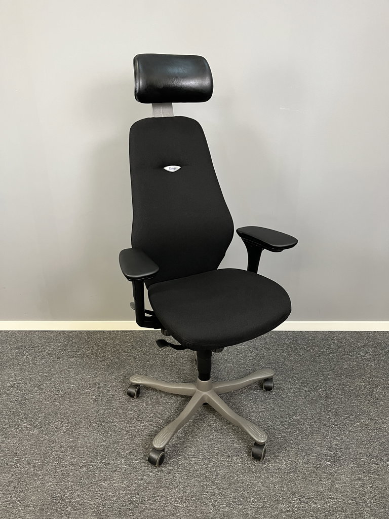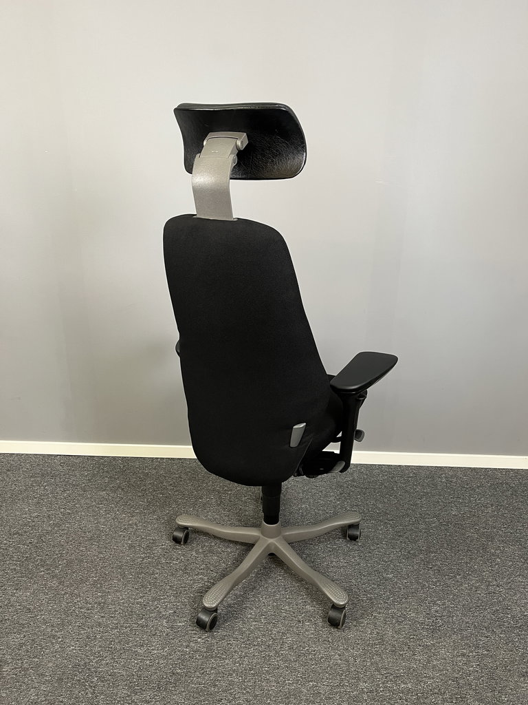 Begagnad kontorsstol från Kinnarps, modell 8000+ i svart, med ny klädsel och nya armstöd. Ergonomisk och justerbar arbetsstol med stöd för rygg, sits och armstöd. Stabil och hållbar konstruktion som passar i kontorsmiljöer eller hemmakontor.