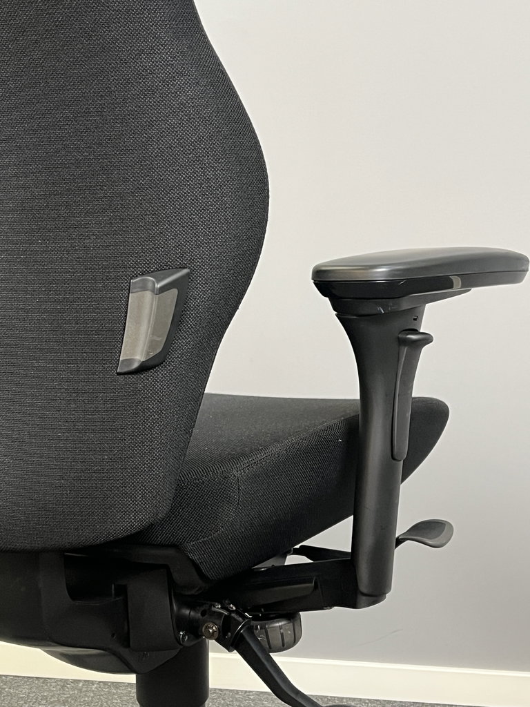 Begagnad kontorsstol från Kinnarps, modell 8000+ i svart tyg. Ergonomisk och justerbar med stöd för rygg, sits och armstöd, vilket gör den lämplig för längre sittningar. Stabil och hållbar konstruktion som passar i kontorsmiljöer eller hemmakontor.