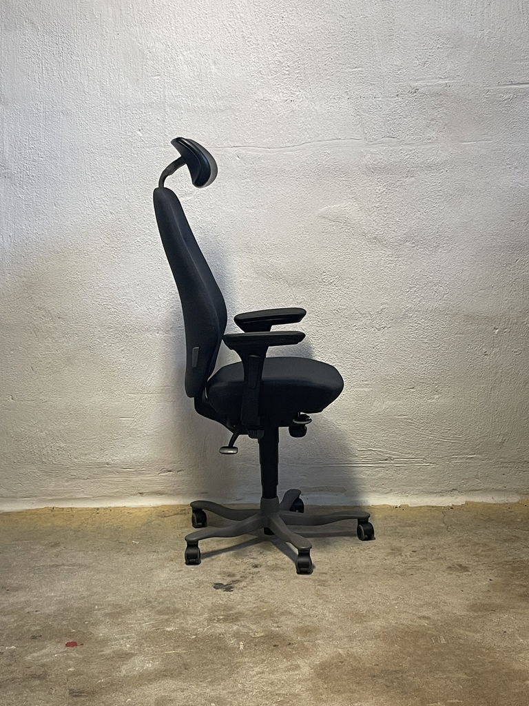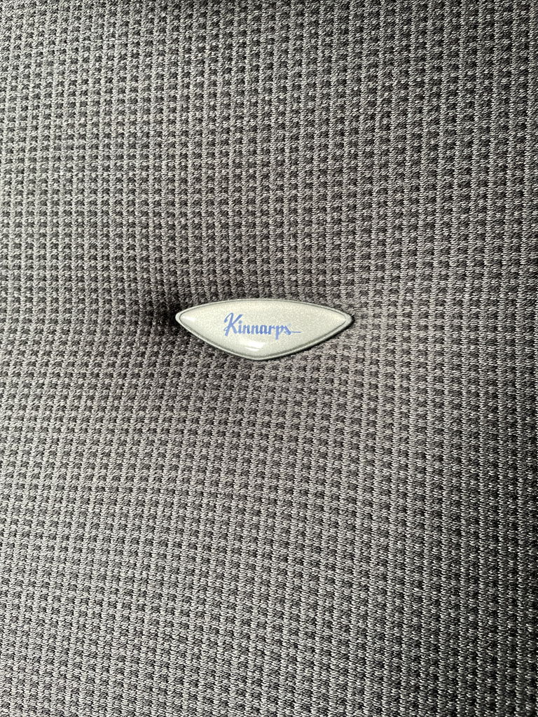 Begagnad kontorsstol från KINNARPS i modellen Plus. Stolen är i gråsvart rutig tygklädsel.