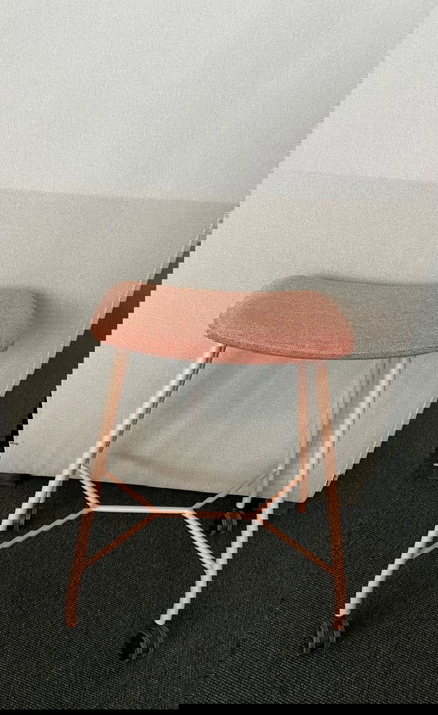 Pall från märket MATERIA i modellen Motus på hjul i rosa tygklädsel.